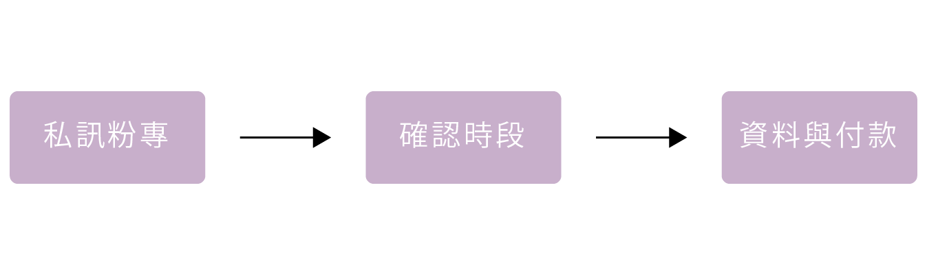 1 請透過粉絲專頁私訊,告知想報名的課程或預約的服務項目。 (將隨不同服務項目安排現場或遠距服務)